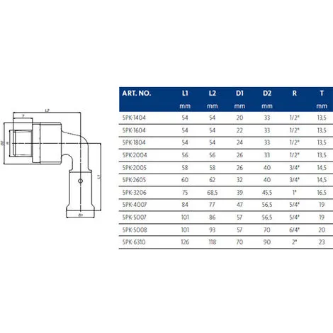 - Type: Raccord coudé, Profilé de sertissage